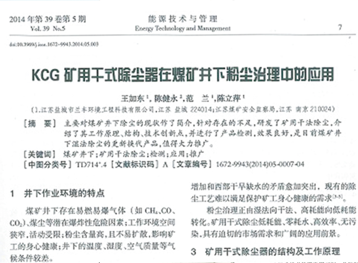KCG礦用幹式除塵器(qì)在煤礦井下(xià)粉塵治理(lǐ)中的應用
