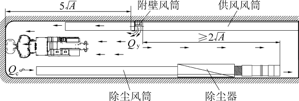 國家對礦井一(yī)通三防的要求不斷提升,需要使用更加安全、高效、節能(néng)的抽出式除塵風(fēng)機。高瓦斯礦井首先要避免瓦斯在掘進工作(zuò)面死角聚集,防止掘進工作(zuò)面和巷道出現(xiàn)循環風(fēng)産生(shēng)安全隐患,所以通風(fēng)規程上(shàng)規定不可以存在壓風(fēng)風(fēng)流完全從徑向流出和沒有壓風(fēng)風(fēng)流直吹掘進工作(zuò)面的情況,要求壓風(fēng)口與掘進工作(zuò)面的距離不超過5-10米,要求抽風(fēng)口在壓風(fēng)口後方5到10米,造成粉塵擴散影響除塵效果。